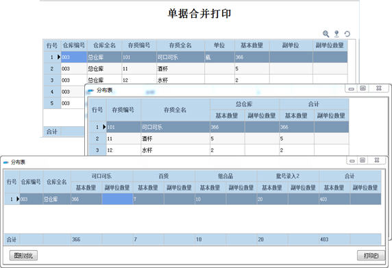 可以將多張銷售單、其他出庫單,進行數(shù)量匯總顯示及打印,并可以按倉庫或存貨方式,分布顯示,方便倉庫配貨及物流發(fā)貨。