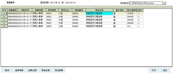 可通過‘查詢’和‘選擇單據(jù)’功能通過單據(jù)日期和單據(jù)類型篩選表體顯示的需掃描電子監(jiān)管碼的商品批次。