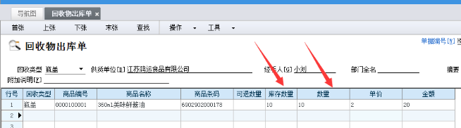 (商家將包裝物退回給廠家), 輔助功能-包裝物回收物管理-回收物出庫單,錄入對(duì)應(yīng)的數(shù)量